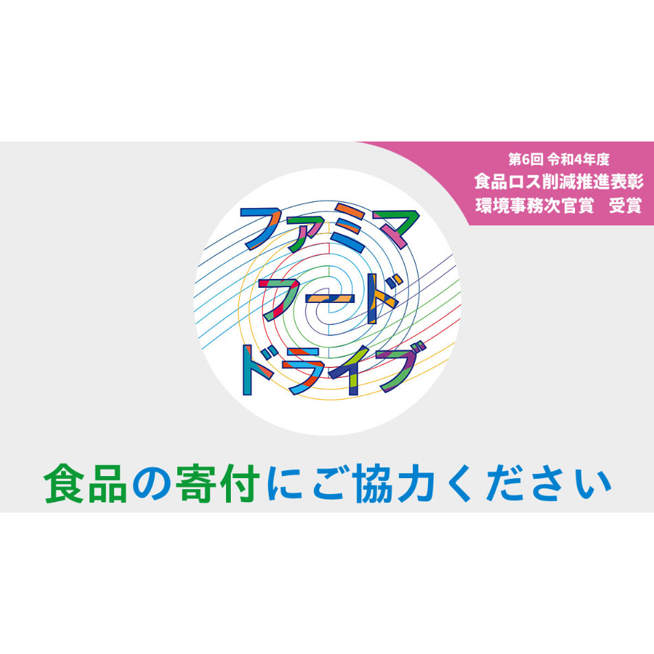 ファミリーマート様は県内各所の店舗にてフードドライブのボックスを設置、ご協力いただいております。この取り組みは全国的なもので、各家庭で余った食品をそれぞれの地域のパートナーと連携して、支援が必要な方にお届けしています。いつもありがとうございます。