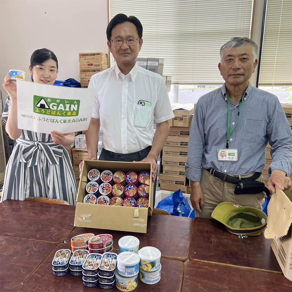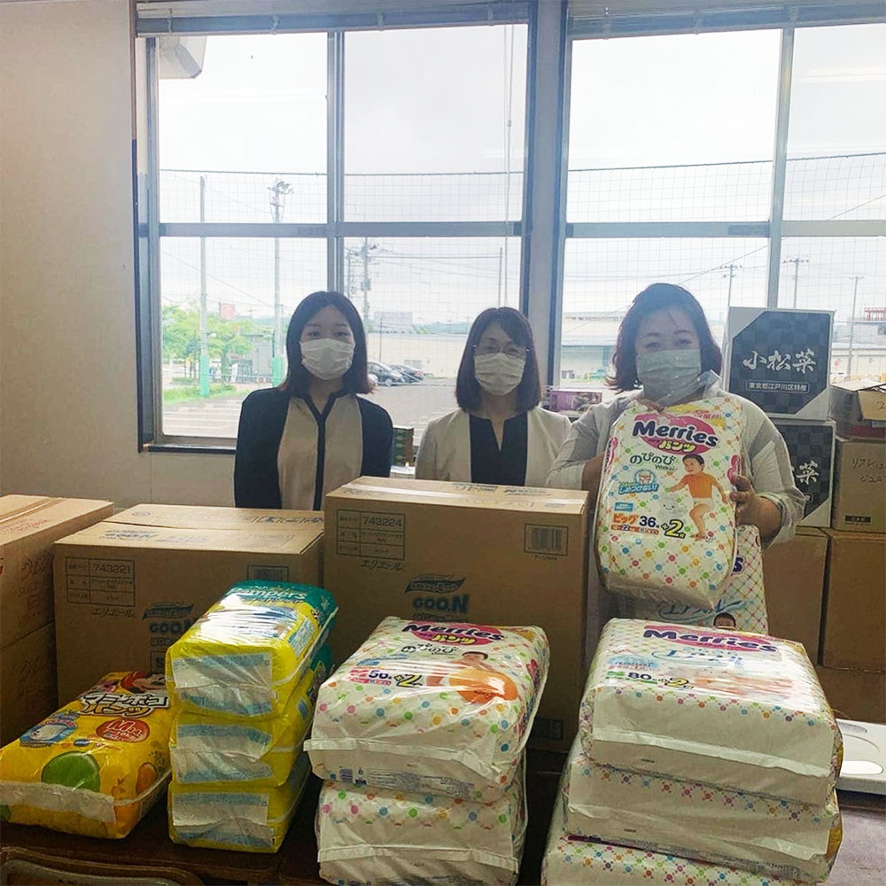 IHI東北支社様は、アルファ米や沢山のりんごをはじめ、おむつや生理用品をご提供いただきました。