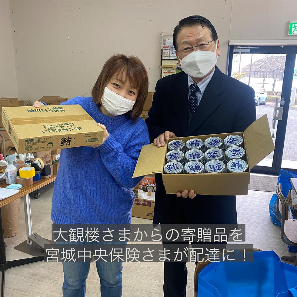 宮城中央保険様は食品の寄贈のほか、さまざまな企業様からいただく寄贈品の運搬をしていただいております。
