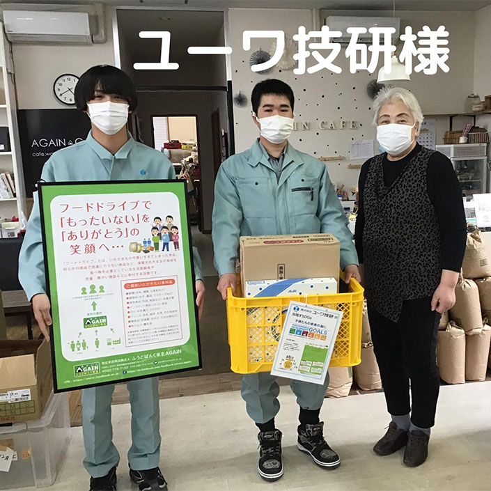 株式会社 ユーワ技研 様ご協力をありがとうごさいます ユーワ技研 様ホームページへ ユーワ技研様は毎月社内で集めた寄付金をご寄付いただいております。またフードドライブも行っており野菜や米などもご寄贈いただいております。とても意識の高いサポーター様です。いつもありがとうございます。